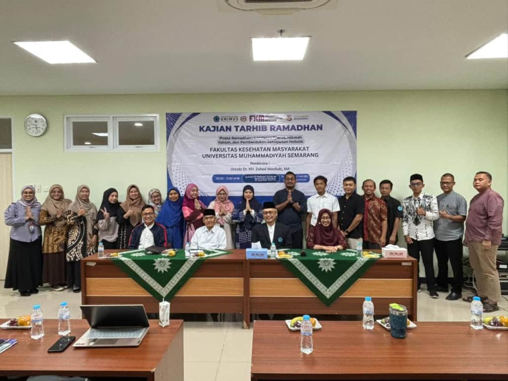 Semarang – Fakultas Kesehatan Masyarakat (FKM) Universitas Muhammadiyah Semarang (Unimus) menyelenggarakan kegiatan Kajian Tarhib Ramadhan dengan tema “Puasa: Landasan Syariat, Hikmah Ilahiah, dan Pembentukan Ketaqwaan Holistik.” Kegiatan ini menghadirkan Ustadz Dr. KH. Zuhad Masduki, M.A. sebagai pembicara dan diikuti oleh dosen serta tenaga kependidikan dari Program Studi S1 Kesehatan Masyarakat dan S1 Ilmu Keolahragaan.